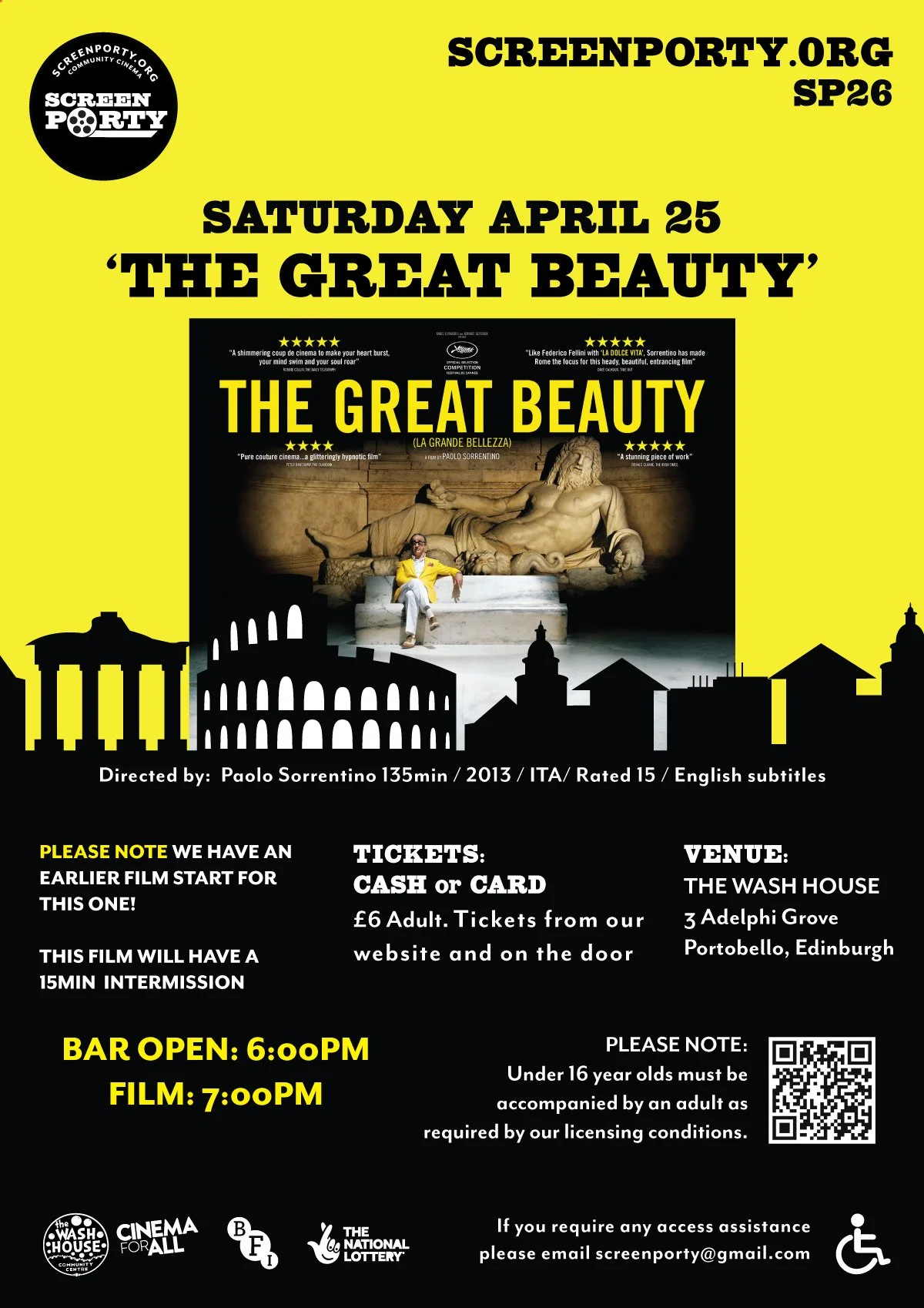 Directed by: Paolo Sorrentino 135min / 2013 / ITA/ Rated 15 / English subtitles